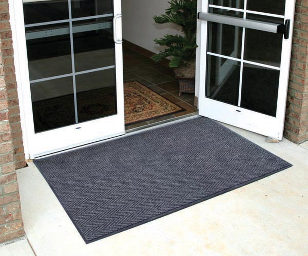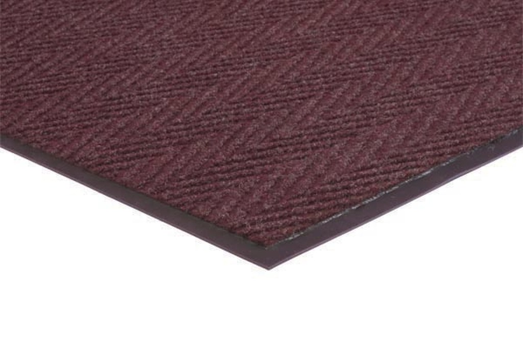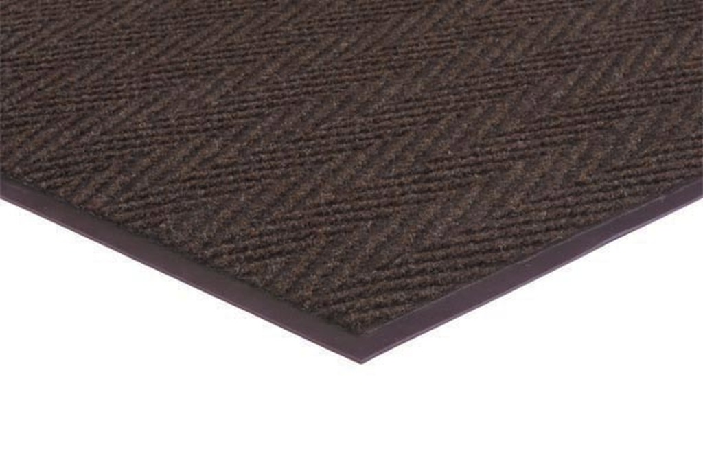 - Attractive Herringbone needle-punch carpet cleans shoes from any mat direction.