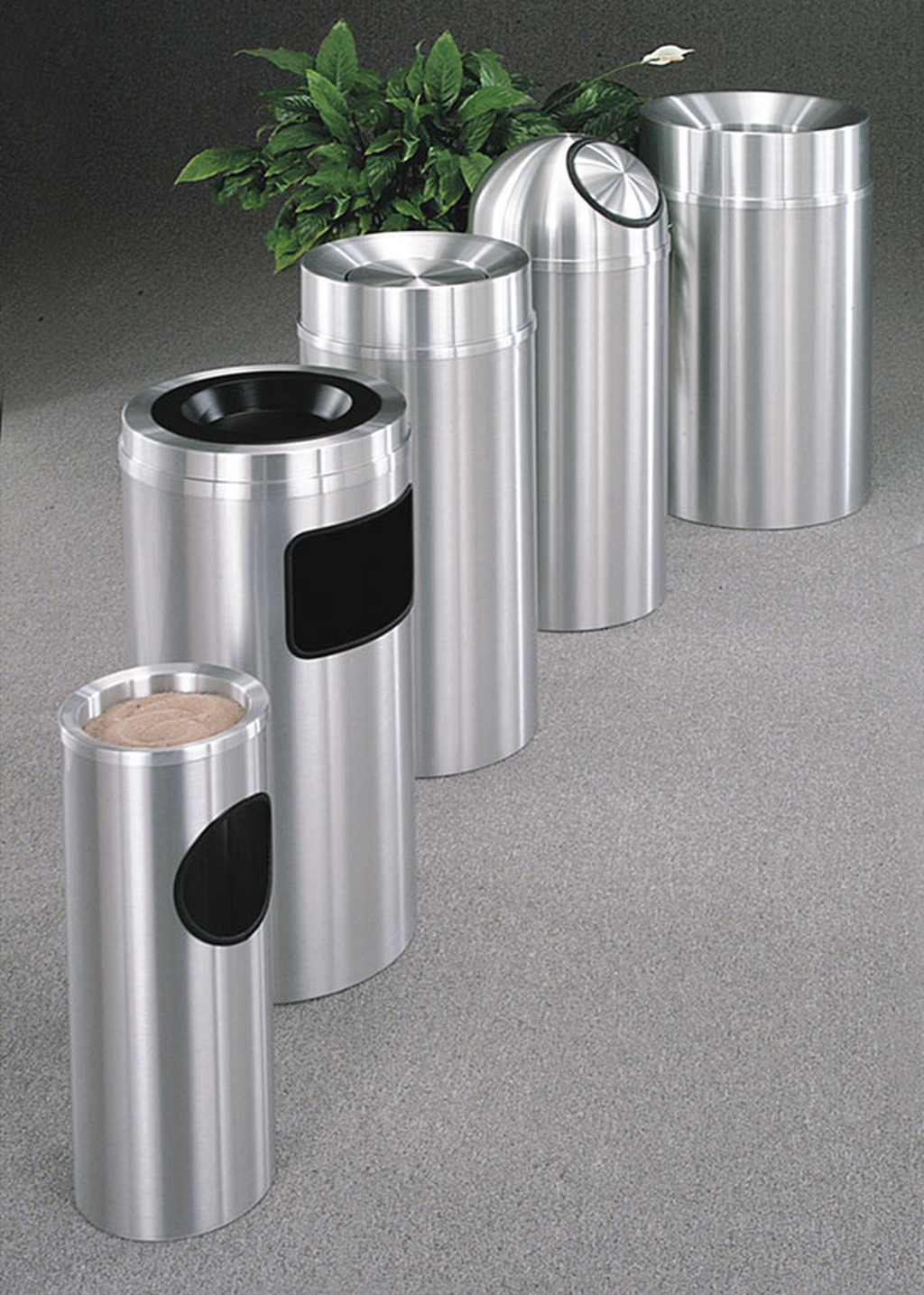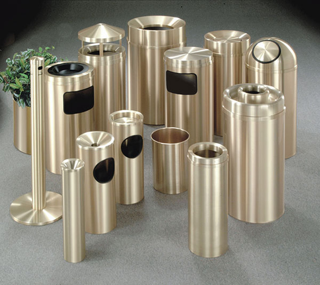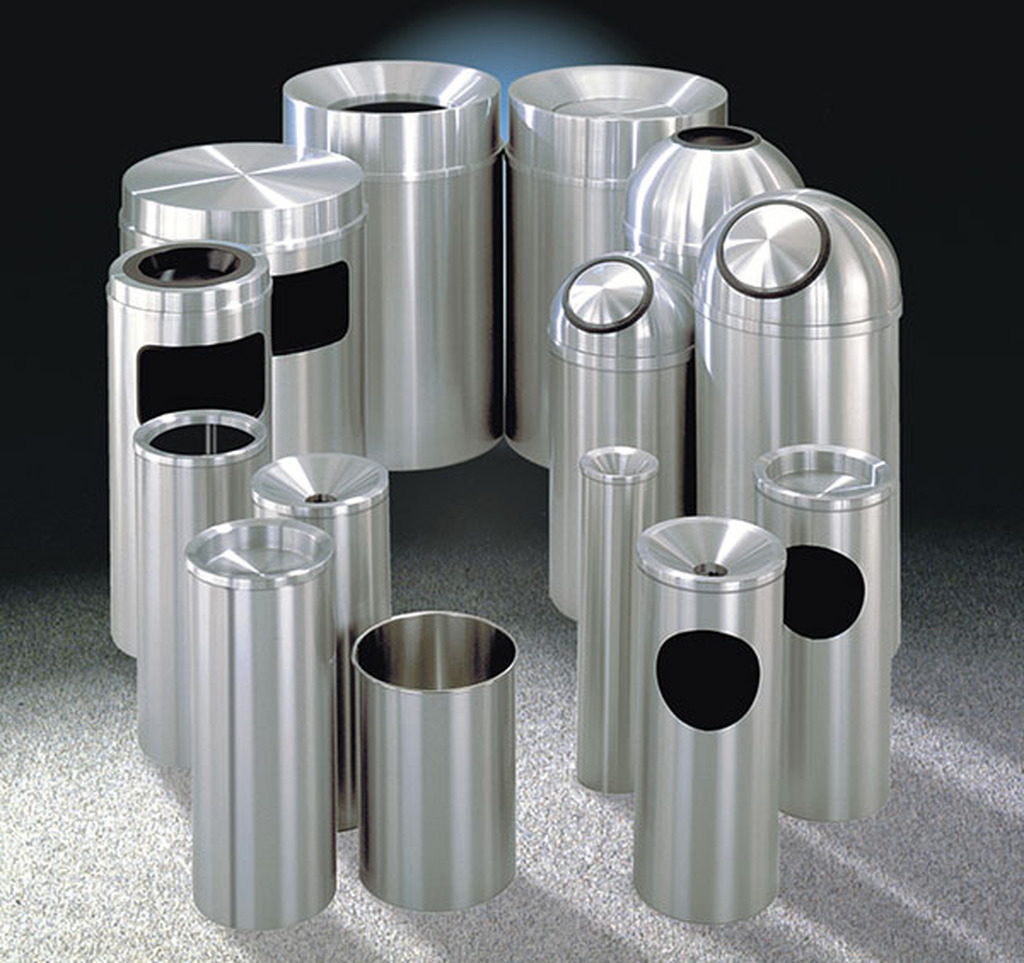 - The “New Yorker” Satin Aluminum Waste Receptacles are recognized in the marketplace as a premier line of waste receptacles. They are known for their conservative, dignified look, and easy-to-maintain finish.
