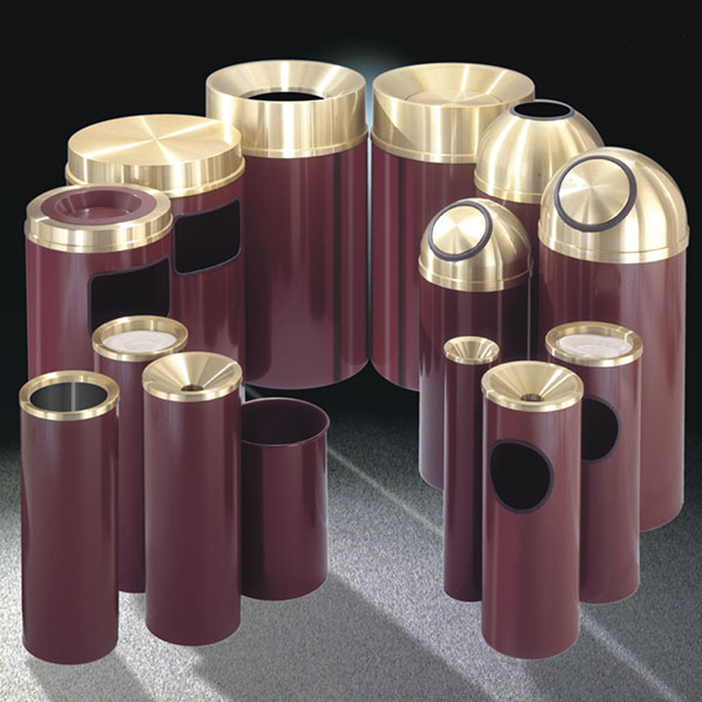 - The “Mount Everest” Waste Receptacles are available in over 30 models and hundreds of finish combinations! These galvanized steel waste receptacles are Glaro’s most economical. Available in 29 designer finishes with satin aluminum, satin brass, or matching covers.