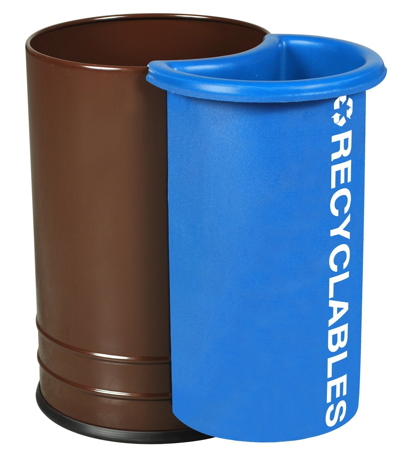 - Desk-side 5-gallon wastebasket with funnel top and sidekick attachment that holds up to 10 uncrushed, 12 oz. water bottles