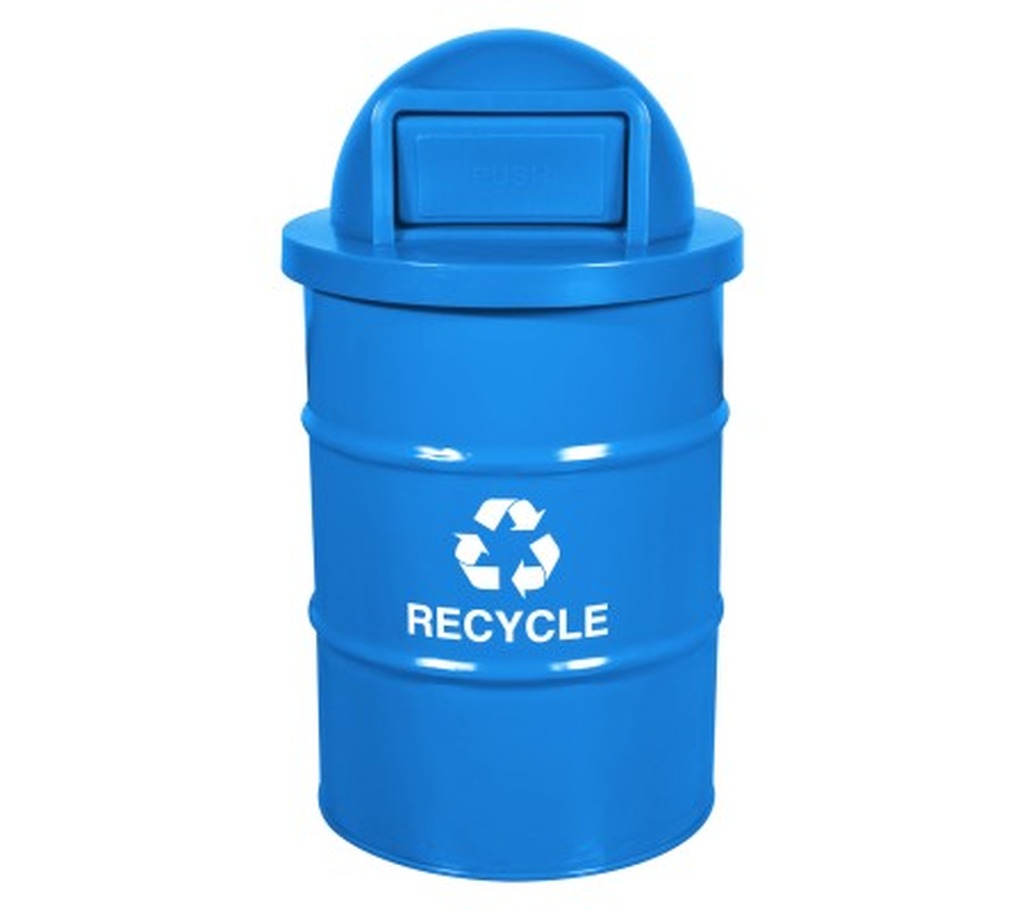 Recycle Blue 55 gal steel drum with Blue dome lid with door