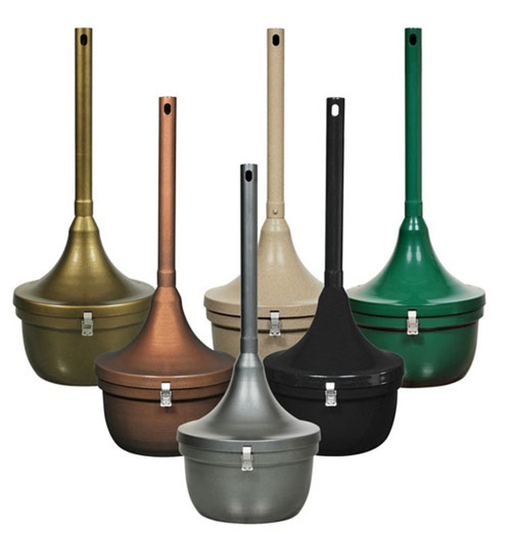 - Fire-safe cigarette receptacle will not melt or burn and requires no sand or water