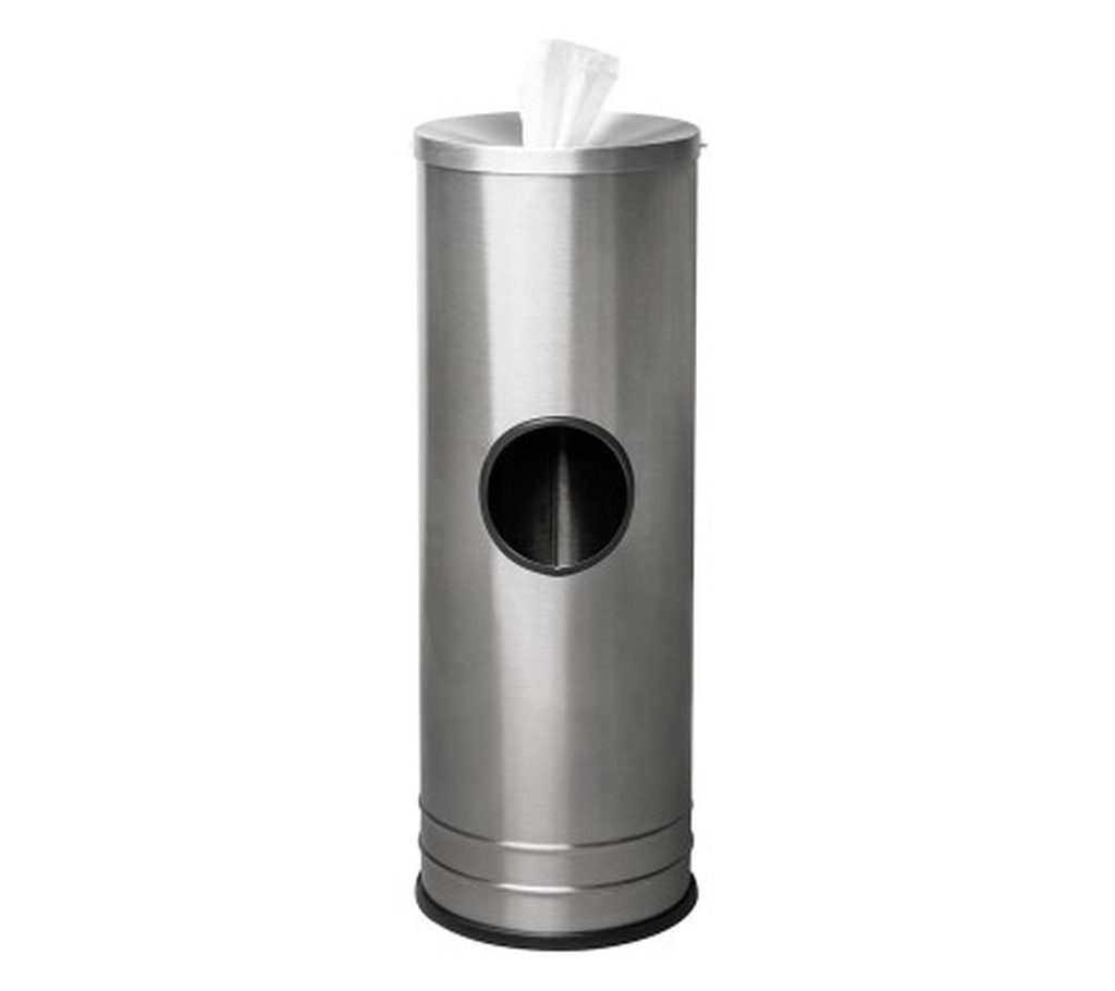 Satin Stainless Steel unit compliments any environment with easy dispensing of wipes